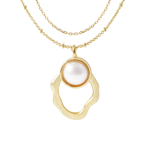 2 Chain Hollow Oval Pearl Necklace